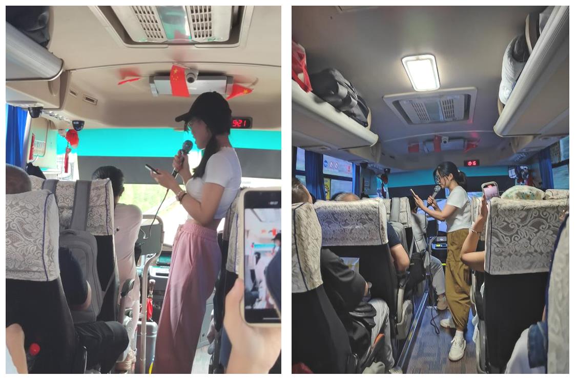 19日清晨,我們迎著朝陽帶著快樂的心情出發(fā)啦。一路上,才子佳人們拿出他們的十八般武藝進行了節(jié)目表演,有歌曲獨唱、合唱,有詩朗誦,有單口相聲,有講笑話的、有談感想的,好不熱鬧。